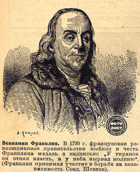 Франклин знал уже из опытов с лейденской банкой, что железный прут обладает способностью как бы собирать электричество.