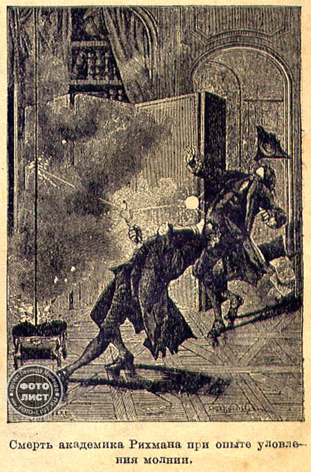 К сожалению, Рихман стал производить опыты без надлежащей осторожности и поэтому поплатился жизнью.